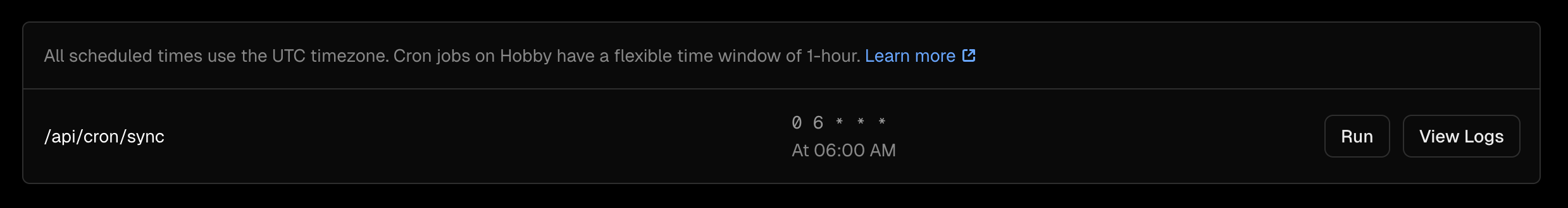 Data gets into Cortex two ways: a Vercel cron that runs daily, and a manual sync button in the header.